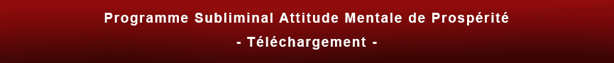 Le mode de leur “programmation mentale” est souvent la cause de leur situation. Vous avez la possibilité d’acquérir les “attitudes mentales d’abondance” en écoutant souvent ce programme subliminal “Prospérité”.